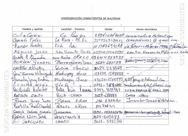 CESCEM CORRIENTES CENTRO DE EX SOLDADOS COMBATIENTES EN MALVINAS DE CORRIENTES |